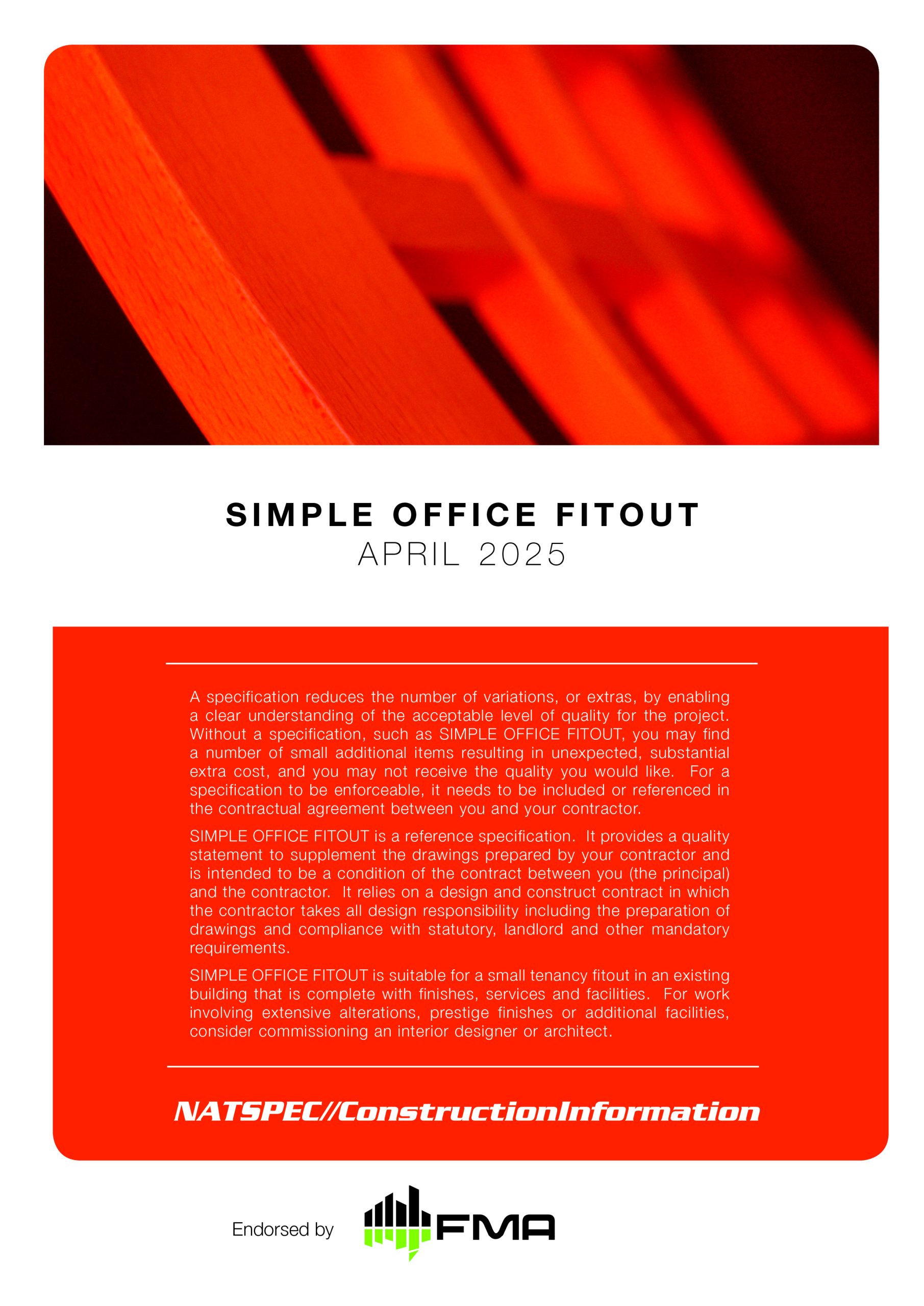 SIMPLE Office Fitout is a reference specification which provides a quality statement to supplement the drawings prepared by your contractor.